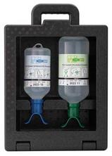 Contains 2x 500mL sterile saline eyecup bottles in a shock-proof polystyrene box