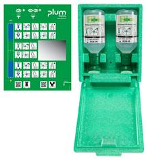 Containing 2 x 500mL Plum Eyewash. Particularly suitable for very dusty and dirty production areas and for mobile workplaces. It is equipped with a pictogram on the front side and mirror.